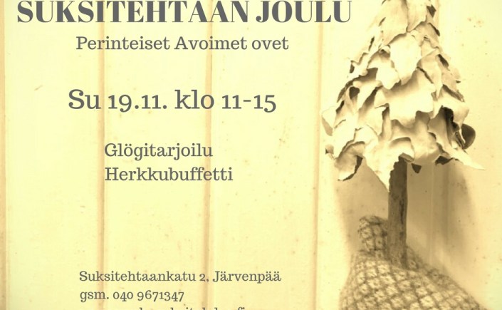 Tervetuloa nauttimaan Suksitehtaan joulusta! Normaalien aukiolojen lisäksi joulukaudella putiikkiin voi piipahtaa myös sunnuntaisin klo 11 – 15. Soihdut sammuvat pe 22.12. klo 12 – 18 jälkeen, kun rauhoitumme itsekin joulun ja uuden vuoden viettoon.