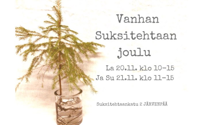 Vanhan Suksitehtaan joulun aloitus la 20.11. klo 10-15 ja su 21.11. klo 11-15.
